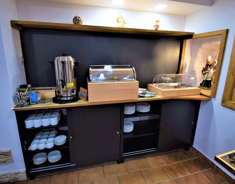 K ubytování nabízíme bohaté snídaně formou bufetu a možnost přípravy kávy v automatickém kávovaru. Pro ubytované je k dispozici plně vybavená kuchyňka, kde si dle potřeby budou moci připravit jídlo. Dále si mohou během svého pobytu kdykoliv vybrat víno, pivo, mošty atd. ze samoobslužné vinotéky, která se náchází ve vestibulu pensionu. Nápoje ze samoobslužné vinotéky zaplatíte následující den při snídani. Nedílnou součástí je i možnost využití společenské místnosti, terasy, či lyžárny/kolárny, která je hlídaná kamerovým systémem a tudíž jsme schopni zabezpečit i kola vyšší cenové kategorie.